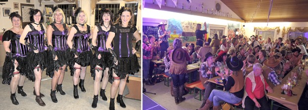 Ganz nach dem diesjährigen Motto „Wild, wild West“ füllte sich der zum Saloon umfunktionierte Saal mit zahlreichen Cowboys, Indianern, Fährtensuchern und Goldgräbern. Den Gästen wurde ein abwechslungsreiches Programm mit Bütten, Sketchen, Tänzen und Liedern geboten.