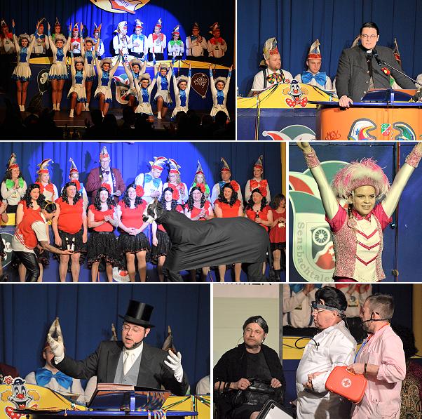 Moderiert wurde die erste Hälfte vom Sitzungspräsidenten Marcel Daub (TSV), nach der Pause nahm Sitzungspräsident Thomas Johe (MGV) das Ruder in die Hand. Einen grandiosen Auftritt hatte das Tanzpaar des TSV, Lilly Dinnebier und Selina Holschuh, sowie das neue Funkenmariechen des TSV, Dalma Trakperger (alle drei wurden von Jana Dinnebier und Alena Holschuh trainiert). Den nächsten Auftritt in der Bütt hatte der Protokoller Jens Ihrig von der Erdbachgarde aus Stockheim. Auch in diesem Jahr schwang das Sensbachtaler Männerballett mit seinen roten Kleidern zu den spanischen Liedern die Beine - trainiert von Marion Hartmann, gestylt von Gabi Schmitt. Schwungvoll ging es mit der Showtanzgruppe des TSV mit einer Reise durch Deutschland weiter. Beim Schlusspunkt der Sensbachtaler Fastnachtsshow zeigten Dr. Gerd Bock (Gerd Scheuermann) und Dr. Ralf Würstel (Ralf Müller), wie in einer Arztpraxis im Ärztehaus zugeht.