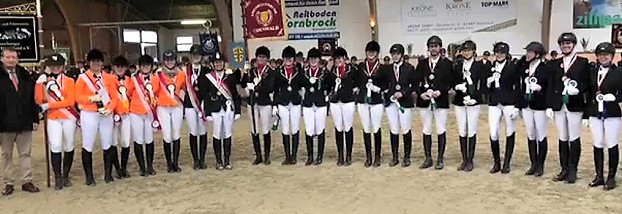 Das nasskalte Wetter tat der guten Laune des Erbacher Teams, darunter vier Reiter/innen aus der Oberzent, keinen Abbruch, zumal man in den beiden Reithallen des gastgebenden Vereines beste Bedingungen für Pferd und Reiter vorfand. Etwas aufgeregt, schließlich war es die Premiere für das neu zusammengestellte Team, aber gut vorbereitet startete die Mannschaft in einem kombinierten Mannschaftswettkampf, einer Mischung aus Dressur- und Springprüfung. Insgesamt 31 teilnehmende Vereine aus dem Verbandsgebiet Hessen-Nassau des Pferdesportverbandes Hessen gingen hier an den Start.