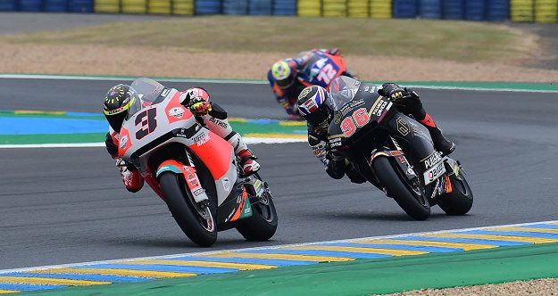 Bestes Ergebnis der bisherigen Saison KTM-Fahrer Lukas Tulovic mit der Startnummer 3 auf der Strecke in Le Mans. (Foto: Kiefer Racing)(hr) Der Eberbacher Lukas Tulovic verpasste am heutigen Sonntag in seinem fünften Rennen als Stammfahrer in der Moto2-Weltmeisterschaft seine ersten Punkte nur haarscharf.
