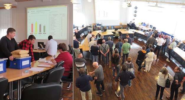 Keine Änderung an der Sitzverteilung (Fotos: Claudia Richter)(cr) Nachdem heute im Eberbacher Rathaus am Leopoldsplatz seit dem Morgen die Stimmen der gestrigen Kommunalwahl ausgezählt wurden, stand um 17.50 Uhr das vorläufige Ergebnis fest: Die Freien Wähler haben die meisten Stimmen auf ihre Kandidatenliste vereinigen können, aber die Sitzverteilung bleibt wie gehabt.