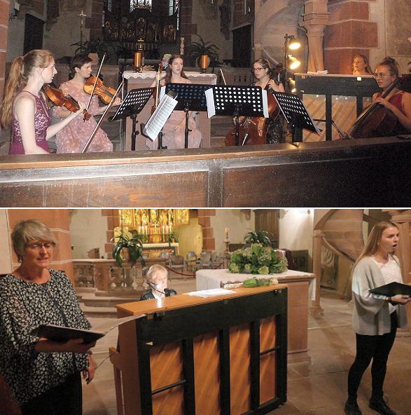 Ein Ausklang für Liebhaber und Kenner – Vielfältig wird es am 11. September (Fotos: privat)(bro) (hqu) Als Hirschhorner Streichquartett, Hirschhorner Klaviertrio u. a. haben sich die jungen Streicherinnen um Konzertpianistin und Lehrerin an der Musikschule Hirschhorn, Michaela Elkenhans, bereits einen Namen gemacht, und so war am Ausklang-Konzert am 28. August die Klosterkirche von Kennern, Liebhabern und Freunden aller Altersklassen, natürlich auch jeglichen Geschlechts, gut besucht.