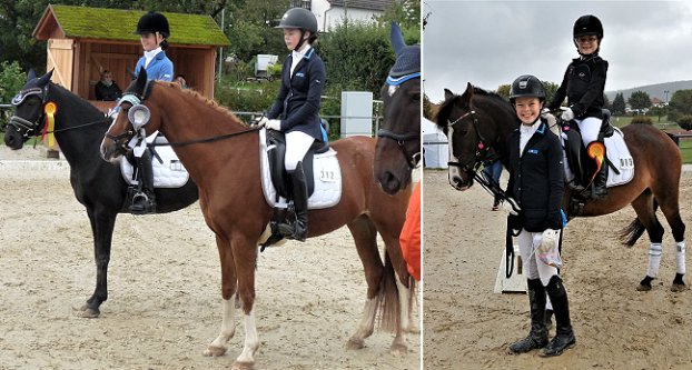 Erfolgreiches Turnier trotz Schmuddelwetter Links: Shirin Mader und Lilou Jama - Gold und Silber für Beerfelden. Rechts: Joline Emmerich, geführt von Lilou Jama, errang die beste Note in der Führzügelklasse. (Fotos: privat)(bro) (rau) Am vergangenen Wochenende, 27. bis 29. September, ging das alljährliche Herbstturnier des Reit- und Fahrvereins Oberzent (RFVO Beerfelden) trotz widriger Wetterverhältnisse erfolgreich über die die Bühne. Dank der umsichtigen Regie der Turnierleiter, Matthias Mader und Andreas Spilger, waren auch bei herbstlichem Schmuddelwetter am Freitag und Samstag gute reiterliche Leistungen zu verzeichnen.