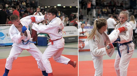 Silbermedaille für Tanika Rundel  Links: Mitja Manschitz in Part eins. Rechts: Tanika Rundel (in rot) punktet mit einem Fußstoß. (Fotos: privat)(bro) (sth) Am ersten Oktoberwochenende trafen sich Kampfsportbegeisterte aus dem In- und Ausland bei der German Open in Hanau. In den Disziplinen Fighting, Duo und Ne-Waza traten in den Altersklassen U18, U21 und Senioren 500 Wettkämpfer aus 27 Nationen an. Für den Judo Club Erbach starteten Tanika Rundel und Mitja Manschitz aus Oberzent im Ju-Jutsu-Fighting in der Altersklasse U21.