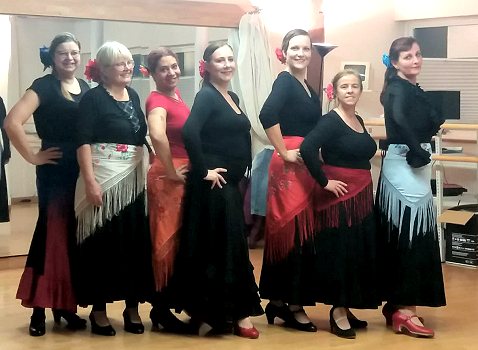 Ausdrucksvoller Tanz aus Spanien begeisterte die Zuschauer (Foto: VHS Eberbach)(bro) (vhs) Am 2. Dezember fand in der Tanzwerkstatt die erste Vorführung der VHS- Flamenco-Gruppe statt. Rund 20 Gäste verfolgten gebannt, was die Tänzerinnen in den letzten drei Jahren bei der professionellen Flamencotänzerin, Joana Maria Rodriguez, gelernt hatten.