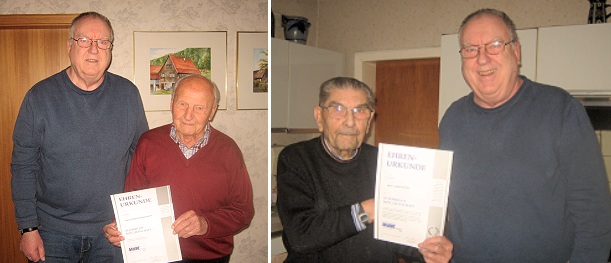 Im Gespräch erläuterten die beiden Geehrten die Gründe für die Mitgliedschaft und besondere Erlebnisse aus dieser Zeit. Beiden Jubilaren dankte der Vorsitzende für ihre Treue zum VdK und wünschte ihnen für die Zukunft Zufriedenheit und Gesundheit.