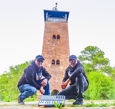 Eberbacher Pop-Duo bastelt an einem neuen Song (Foto: Claudia Richter)(cr) Im Rahmen einer neuen Songproduktion sucht das Eberbacher Mundart-Duo “Turmwächter & Turmfalke” (Hubert Richter und Sahin Hacikoglu, im Bild v.r.) Sängerinnen für ein außergewöhnliches Chorprojekt.