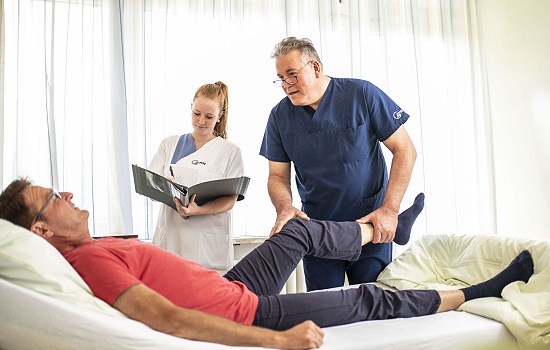 Vom Zeitpunkt des Eingriffs kann der oder die Betroffene in der Regel damit rechnen, sich innerhalb von etwa drei Monaten wieder in den normalen Alltag integrieren zu können: Bereits am ersten Tag nach der Operation beginnt noch im Krankenhaus die Mobilisation auf der Station. Nach durchschnittlich acht bis zehn Tagen Klinikaufenthalt sind die meisten Patienten mobil und können mit Gehhilfen selbstständig Treppen steigen. Das traf auch auf eine 80-jährige Patientin zu, wie Dr. Stark berichtet. Die hatte sich in Corona-Zeiten fünf Wochen zuhause nach einem Sturz herumgequält, bis sie endlich in die GRN-Klinik Eberbach kam. Dort wurde ihr Oberschenkelhalsbruch erfolgreich operiert. Schon am zweiten Tag nach der OP konnte sie mit einer Gehhilfe ein paar Schritte tun. Einige Wochen später ist sie jetzt noch mobiler. Nachdem man sich wieder im „Normalbetrieb“ befindet, sind auch die Rehabilitationsmaßnahmen gesichert. In einer ambulanten oder stationären Einrichtung werden die EPZ-Patienten in der Folge weitere drei Wochen intensiv betreut. Danach kann, falls noch erforderlich, eine entsprechende Physiotherapie durch den Hausarzt oder Orthopäden verordnet werden.