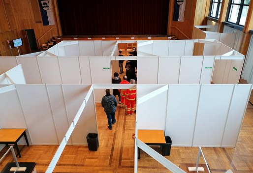 Die komplette Organisation der Impfaktion oblag der Stadtverwaltung Eberbach - von Anschreiben der Impfberechtigten, der teilweise zeitintensiven Verteilung der Termine, die Nachfrage bei Freiwilligen der Eberbacher Blaulichtorganisationen bis hin zur Verpflegung des mobilen Impfteams des Rhein-Neckar-Kreises. Etwa zwölf städtische Mitarbeiterinnen und Mitarbeiter sowie Helferinnen und Helfer der Freiwilligen Feuerwehr Eberbach und der DLRG-Ortsgruppe Eberbach sorgten im großen Saal der Stadthalle für einen reibungslosen Ablauf . Die drei Ärzte des Impfteams bescheinigten der Verwaltung eine sehr gute Planung und Umsetzung der Impfaktion. Gearbeitet wurde auf zwei “Impflinienâ€, es konnten also zeitgleich zwei Personen nach dem ersten Einchecken und der Registrierung, sich auf den Weg zum Informationsgespräch mit einem Arzt, zur eigentlichen Impfung bis hin in den von ehrenamtlich tätigen Helferinnen und Helfern betreuten Wartebereich machen, wo sich die Geimpften noch etwa 15 Minuten aufhalten sollten, bevor ihnen beim Auschecken wieder ihr Impfpass ausgehändigt wurde.