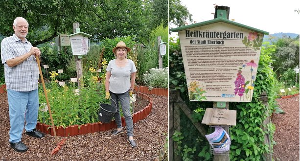 Ehrenamtlicher Einsatz für heilsames Grün (Fotos: Claudia Richter)(cr) Als eine Station des stadtökologischen Rundwegs lädt der Heilkräutergarten in Eberbach zum Verweilen ein. Das Ehepaar Kunath pflegt die Anlage seit Jahren ehrenamtlich.