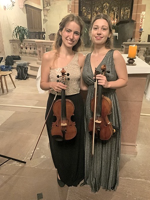 Die musikalische Reise zu zweit begeisterte (Foto: Christina Lechner)(bro) (fvk) Im "AusKlang"-Konzert in der Hirschhorner Klosterkirche am ersten Septembermittwoch nahmen die beiden Violinistinnen Beatrice Calini und Elena Bonandrini ihre Zuhörer mit auf eine musikalische Reise. Den Auftakt machten sie mit zwei Duetten von Reinhold Glière, dessen Name alleine schon eine kleine Europareise mit sich bringt: Ein russischer Komponist mit deutschem Vor- und französischem Zunamen, der sich bestens auf der Violine auskannte und unverkennbar für die Violine komponierte.