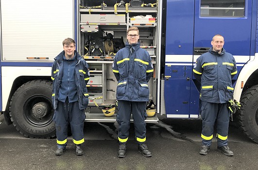 Theoretische und auch praktische Prüfung bestanden V. l.: Merten Warnecke, Lukas Ehls und Jens Böhm nach der bestandenen Prüfung. (Foto: Luisa Haas)(bro) (as) Vier angehende Helfer aus Eberbach traten zum Abschluss der Basisausbildung eins im Technischen Hilfswerk am 13. November in Haßmersheim zur Prüfung an.