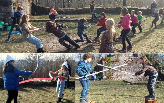 Ritterspiele waren angesagt, und so wanderten knapp 20 Kinder zwischen sieben und zwölf Jahren am Samstagnachmittag fröhlich hoch zur Eberbacher Burgruine. Bei strahlend blauem Himmel erlebte die Gruppe dort oben einen spannenden und actionreichen Nachmittag.