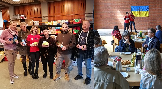 Geflüchtete im Gemeindehaus begrüĂt - Spendenaktionen laufen weiter (Fotos: Claudia Richter/privat)(cr) In Eberbach laufen weiterhin Hilfsaktionen für Menschen, die vor dem vom russischen PrĂ€sidenten Wladimir Putin begonnenen Krieg aus der Ukraine geflohen sind oder noch im Land versuchen zu überleben. Heute fand für die Geflüchteten, die in Eberbach angekommen sind, eine BegrüĂungsveranstaltung statt.