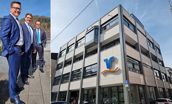 Bilanzsumme trotz schwieriger Bedingungen weiter gewachsen - Fusionsverhandlungen gescheitert Das Vorstandstrio Daniel Mohr, Dr. Achim Himmelmann und Christian Menges (v.l.), rechts die Hauptgeschäftsstelle der Volksbank Neckartal in Eberbach. (Fotos: Hubert Richter)(hr) Zufrieden mit dem Geschäftsergebnis der Volksbank Neckartal für das Jahr 2021 zeigte sich am Dienstag, 12. April, das Vorstandstrio beim Bilanz-Pressegespräch in Eberbach.