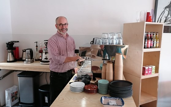 Ein ehemaliger Buchbinder aus Amerika sah jetzt eine gute Zeit, um ein CafĂ© in Eberbach zu eröffnen. Christopher Brown lebt seit drei Jahren in der Stadt, betrieb bereits früher in Potsdam einen Kaffeestand, lernt gerne neue Leute kennen, wollte “etwas anderes machen” und hier ein “CafĂ© ausprobieren”. Die Räumlichkeiten in der BahnhofstraĂźe 22 sah und sieht er als geeignete Location für seine Kaffeerösterei mit CafĂ©.