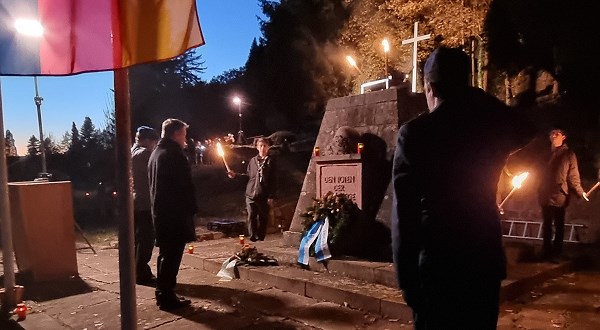 Bei der Kranzniederlegung durch Vertreter der Reservistenkameradschaft spielte die Katholische Pfarrkapelle “Ich hatt´ einen Kameradenâ€. Weitere musikalische Beiträge zur Gedenkfeier kamen von den Bläsern des Fanfarenzugs und dem MGV Liederkranz. auch eine Abordnung des Schiffervereins war dabei, und die Pfadfinder trugen mit Fackeln zur mahnenden Atmosphäre der Veranstaltung bei.
