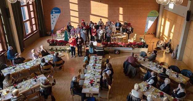 Gute Unterhaltung im evangelischen Gemeindehaus (Foto: privat)(hr) (ba) Am 10. Dezember konnte die Lebenshilfe Eberbach e.V. nach der Corona-Zwangspause wieder ihre jährliche Weihnachtsfeier begehen.