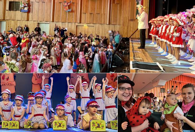 Dazwischen zeigten die jungen Garden und die Showtanzgruppe "Roadrunners", welche Tänze sie fleißig eingeübt und choreografiert hatten. Für viele Mädchen und Jungen waren es die ersten Auftritte am Wochenende. Ganz sicher den allerersten Auftritt überhaupt hatten die Tänzerinnen der "Kuckuckseier", allesamt zwischen 4 und 6 Jahre jung, mit ihrem Urlaubsfeeling verbreitenden Tanz "Ab in den Süden". In passendem Sommeroutfit und mit Reiseköfferchen bestückt, entzückten sie das Publikum. Die gemischte Gruppe "Roadrunners" setzen mit ihrem Showtanz „Weil wir es wert sind“ ein Zeichen für Toleranz. Die Kuckucksküken und Kuckuckskids faszinierten die Zuschauenden mit ihren Gardetänzen, ebenso wie der Soloauftritt des Tanzmariechens Karlotta Brenneis.