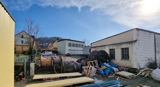 Gegen Dauerwohnen im Wochenendhausgebiet Geplanter Container-Standort für die Pellets-Heizzentrale bei den Stadtwerken. (Foto: Hubert Richter)(cr) Der Bau- und Umweltausschuss des Eberbacher Gemeinderats tagte gestern im Rathaus.