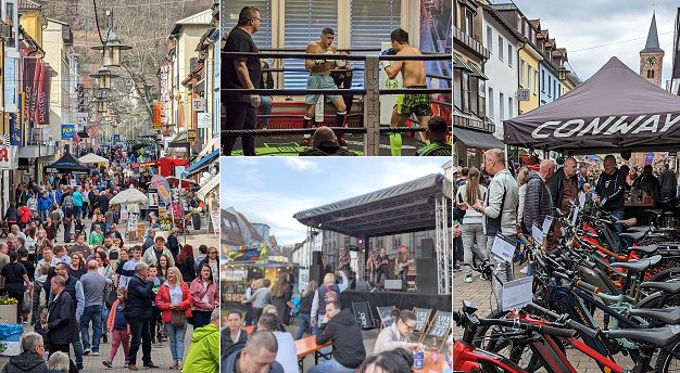 Der erste verkaufsoffene Sonntag des Jahres war heute bei frühlingshaftem Wetter gut besucht. In der autofreien BahnhofstraĂe, FriedrichstraĂe und der HauptstraĂe präsentierten viele Geschäfte ihre Angebote im Freien. Auf dem Leopoldsplatz stellten sich Handwerksbetriebe vor, und einige Autohäuser luden zum Besichtigen ihrer Fahrzeuge ein. Vor dem Geschäft von Büro Ries in der BahnhofstraĂe West durfte das âlängste Osterbildâ auf eine Tapetenrolle gemalt werden. Das rekordverdächtige Gemeinschaftswerk soll für einen guten Zweck versteigert werden. Auf dem Lindenplatz durften die kleinen Gäste Kinderkarussell fahren.