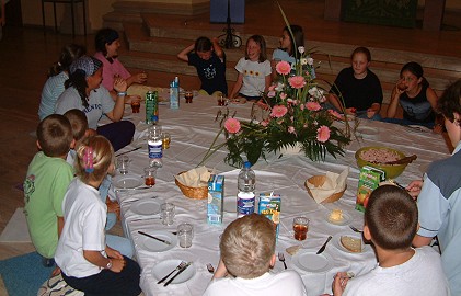 Empore der Kirche ihren wohlverdienten Schlaf, doch das störte am nächsten Morgen kaum jemanden. Nach einem gemeinsamen Frühstück und einer kurzen Morgenandacht verabschiedeten sich die Kinder nach kurzweiligen Stunden und mit Erlebnissen, über die so mancher alte Eberbacher nicht verfügen dürfte.