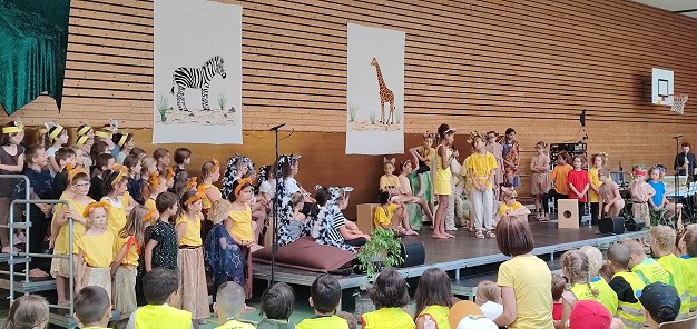 Musikalische Geschichte über Freundschaft in der Savanne (Foto: Claudia Richter)(cr) Eine Geschichte über Freundschaft erzählen Kinder morgen musikalisch in der Mehrzweckhalle der Dr.-Weiß-Schulen. Zur heutigen Generalprobe waren Mitschülerinnen und Mitschüler eingeladen.