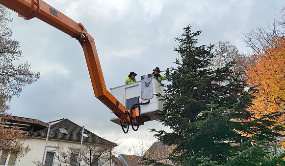 Für eine stimmungsvolle Adventszeit (Foto: Claudia Richter)(cr) Mitarbeiter der Städtischen Dienste und Ehrenamtliche sind in diesen Tagen in Eberbach unterwegs, um die Weihnachtsbeleuchtung für die beginnende Adventszeit vorzubereiten.