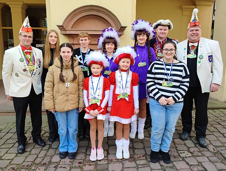 "Ordensminister" Sascha Menges und KGK-Präsident Udo Geilsdörfer überreichten heute Vormittag im Gasthaus “Zum Adler†den zehnjährigen Hausorden an Elisa Becker, Leonie Beisel, Luca del Bianco, Mathis Gerboth, Mick Lenz, Lena Peters, Carsten Stillner, Sarah Teufel und Anna-Sophie Wäsch.