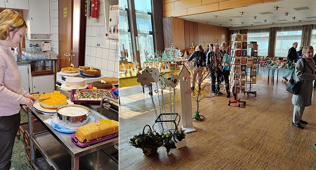 Schon vor der offiziellen Eröffnung um 10 Uhr fanden Kundinnen und Kunden den Weg ins katholische Pfarrheim, so Draxler. Neben den vielen farbenfrohen Artikeln für Haus und Heim war auch die große Auswahl an selbstgebackenen Kuchen ein Grund, den Frühlingsbasar zu besuchen. Die ehrenamtlich Tätigen der Kreativwerkstatt konnten am Morgen zahlreiche Kuchenspenden aus den eigenen Reihen und auch von spendenbereiten Bäckerinnen entgegennehmen und so wieder mit einem großen Kuchenbuffet aufwarten.