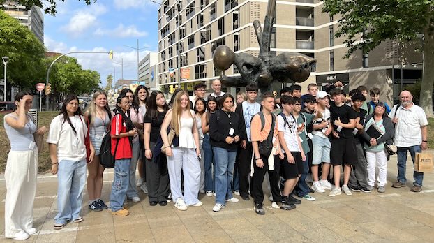Realschule Eberbach fliegt mit Erasmusprojekt nach Barcelona (Foto: privat)(bro) (jg) Im Rahmen des Erasmus+-Programms reisten 16 Schülerinnen und Schüler der Realschule Eberbach Ende Mai für eine Woche nach Barcelona, um dort gemeinsam mit einer spanischen Partnerschule das Projekt „The Playlist“ umzusetzen. Ziel des Projekts war es, Musik als Zugang zu Sprache und Kultur zu nutzen. So wurde unter anderem der Song "Just the Way You Are" von Bruno Mars sprachlich und inhaltlich analysiert.