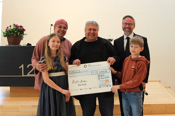 Mit einem kräftigen Applaus dankte die Gemeinde für die Ausführungen und das Engagement, während Marlene und Nikolas Eiermann den symbolischen Spendenscheck über 1.000 Euro von "human aktiv" überreichten. Beim anschließenden Kirchenkaffee standen Büsra Isik und Curd Walschburger weiter Rede und Antwort.