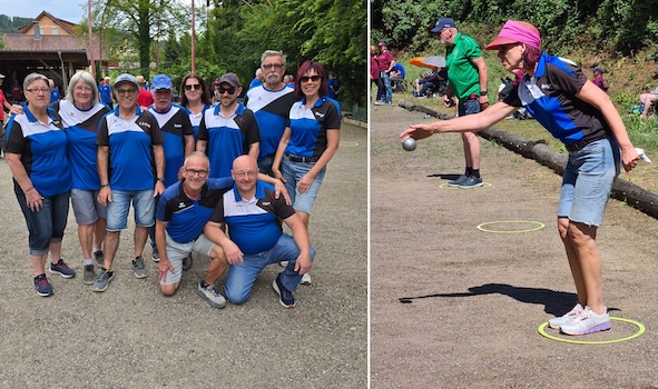 Erfolgreicher Doppel-Heimspieltag (Fotos: privat)(bro) (td) Als gegen Mittag das Thermometer die 30-Grad-Marke knackte, gingen in der Boule-Hütte vorübergehend die kühlen Getränke zur Neige – nicht so der Siegeswille und Mut der BFN-Spielerinnen und -Spieler. Auf bestens präparierten Boulefeldern traten kürzlich die zwölf Mannschaften der Bezirksliga zum einzigen Dreier-Spieltag bei schwülem Wetter ab 9 Uhr morgens an.