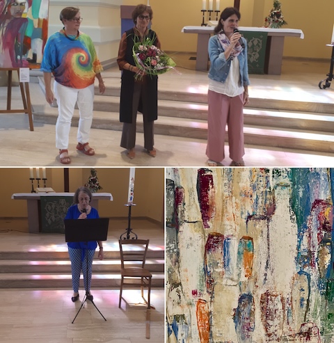 Bei Sekt und Gebäck gab es anschlieĂźend die Gelegenheit, mit der Künstlerin selbst die Bilder im Detail zu entdecken.