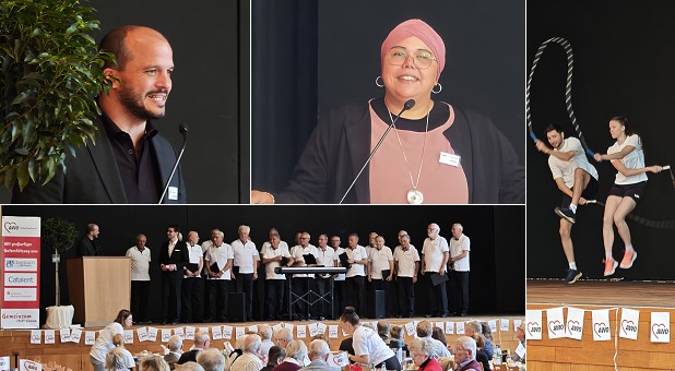 Hauptsächlich gedacht für Menschen ab 70 Jahren, war der gesellige Nachmittag auch heute wieder generationenübergreifend. Bei kostenloser Versorgung mit Kaffee und Kuchen, Snacks und anderen Getränken durch ein ehrenamtliches Hilfsteam der Firma Catalent standen gute Unterhaltungen im Mittelpunkt, aufgelockert durch ein kulturelles und sportliches Rahmenprogramm mit dem MGV Liederkranz, der Rope Skipping (Springseil)-Gruppe und einer Turngruppe des TV Eberbach sowie mit einem Brandschutz-Vortrag des Feuerwehrkommandanten Marco Bräutigam.