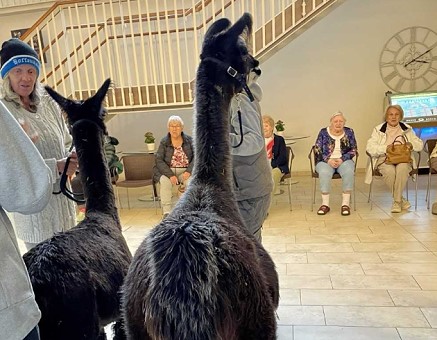 Zum Abschluss besuchten die Alpakas sogar bettlägerige Heimbewohner im zweiten Obergeschoss. Ohne Scheu fuhren dabei die Tiere zusammen mit Familie Link im Aufzug.