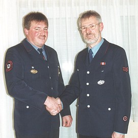 Abteilungswehr Lindach hielt Jahresrückblick Dank und Anerkennung zollte Abteilungskommandant Achim Helm (l.) Karl-Heinz Rupp, der seit 1974 ununterbrochen Mitglied im Feuerwehrausschuss gewesen ist. (Foto:Wartner)(hr) (ewa) Wer das ganze Jahr über um die Sicherheit der Bevölkerung besorgt ist, darf auch einmal feiern. Das tat denn auch die Freiwillige Feuerwehr Abteilung Lindach anlässlich ihrer Jahreshauptversammlung. Vorher wurde jedoch Rechenschaft über das vergangene Jahr abgelegt - in Gegenwart von Gesamtkommandant Jörg Kubein und Ortsvorsteher Wolfgang Brenneis.