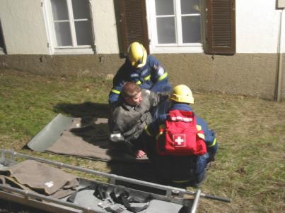 Nach dem Beladen der Fahrzeuge war der erste Erkundungstrupp kurze Zeit nach der Alarmierung vor Ort. Karl Lanik klärte den Zugführer über die Situation in dem Gebäude auf. Bei einem kurzen Öffnen der Eingangstür trat dichter Rauch hervor. Die Atemschutzgeräteträger wurden gerufen und brachten die ersten zwei Verletzten, Mitglieder der Jugendgruppe, ins Freie. Das ganze Haus war inzwischen von Flutlichtstrahlern umstellt und so konnten die anderen Helfer nach dem Entweichen des Rauches ebenfalls in das Gebäude vordringen. Zwei weitere Verletzte wurden im zweiten Stock geortet und nach dem Aufbrechen einer Tür geborgen. Die letzten zwei Verletzten zu bergen stellte die größte Herausforderung dar. Durch die Decke im zweiten Stock mussten die Helfer einen Durchbruch in den Speicher schlagen. Durch mehrere Schichten Holz und Lehm ließ sich der Durchbruch nur langsam verbreitern. Schließlich wurde eine Kettensäge herbeigeholt, mit der das Loch verbreitert wurde. Durch den Durchbruch konnten die Helfer mit einer Leiter in den Speicher des Gebäudes vordringen und die zwei Verletzten erstversorgen. Nach dem Anlegen von Abseilgeschirr wurden die Verletzten nacheinander einen Stock tiefer gebracht und dort auf Tragen umgelagert. Knapp drei Stunden nach der Alarmierung waren auch die letzten zwei Jugendlichen am Verletztensammelpunkt. Die Flutlichtstrahler wurden abgebaut und das ganze Gerät wieder auf den Fahrzeugen verstaut. Bei der Analyse im Anschluss bekräftigten die Helfer den hohen Lerneffekt solcher Übungen.