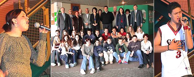 Dance and Act-AG lud Sponsoren ein Mitte: Die anwesenden Sponsoren mit Christine-Brigitte Gümbel (r.), Rektor Walter Zuck (r.oben)und den Mitgliedern der Dance and Act-AG. Links Marina Galm in Aktion, rechts Mikel Steiner. (Fotos:C.Richter)(hr) Eine Kostprobe ihres Könnens bot die Dance und Act-AG gestern in der Realschule in Eberbach. Die 21 Schülerinnen und Schüler dieser AG waren vor kurzem nach Berlin gereist , um dort bei Deutschlands bestem Trainer und Choreographen der Popszene, Detlef DEE! Soost an einem Tanzseminar teilzunehmen. Schulleiter Walter Zuck begrüßte die Sponsoren der Firmen Gerd Mosca, DGF Stoess, Oskar Dilo, Tabak Ries, Farben Schäfer, Pension Gerlind, sowie Vertreter von Volksbank und Sparkasse. Zuck dankte für die Geldspenden, mit welchen die Aktion in Berlin finanziert werden konnte. Weiter dankte er Christine-Brigitte Gümbel, die die AG leitet, für Öffentlichkeitsarbeit zuständig ist und bei der Suche nach Sponsoren sehr erfinderisch war. Eine Veranstaltung in dieser Art habe es an der Schule noch nie gegeben, so Zuck. Gümbel war von dem Aufenthalt in Berlin , den Leistungen und vor allem von der Ausdauer ihrer Schülerinnen und Schüler beim Training begeistert. Selbst DEE schickte ein Fax und teilte den jungen Künstlern mit, dass er das Team aus Eberbach weiter betreuen möchte. Er sei von den Talenten aus Eberbach stark beeindruckt. Endlich durften die Akteure die Bühnen stürmen und sich mit einem fetzigen Programm bei den Sponsoren bedanken. Mitgemacht haben Sebastian Dietz, Isabella Fania, Sarah Frenzel, David Galm, Marina Galm, Michel Gottschalk, Marie-Fleur Gümbel, Oliver Johe, Mona Kappes, Danny Kussmann, Jasmin Leiner, Aljoscha Lenz, Christiane Münch, Fabienne Ries, Alisha-Louise Safferling, Xenia Schäfer, Christina Schneider, Konstantin Siefert, Mikel Steiner, Benjamin Weiss und Simon Zimmermann. Das gestern gezeigte Programm wurde zum ersten Mal präsentiert, gesungen wurde live. Am kommenden Wochenende werden alle Sänger zwei Tage lang im Orbit Sound Studio ihre erste gemeinsame CD aufnehmen.