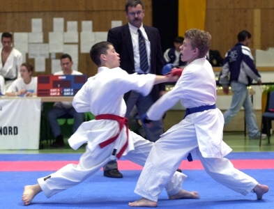 Wladislaw Gumarow musste sich im Finale geschlagen geben Finalkampf, Gumarow (links) punktet gegen Sandhaas. (Foto:privat)(tw) (ps)Ausgerechnet in seinem dritten Jahr in der Schülerklasse mußte sich Wladislaw Gumarow nach dem Landesmeistertitel 2001 und 2002 im Finale der Karate-Landesmeisterschaften der Kinder, Schüler und Jugend geschlagen geben. Dabei deutete in den Vorkämpfen alles auf eine erfolgreiche Titelverteidigung hin. Tobias Meyer, Tus Freiberg (2:8), Florian Gitzler, Kirchheim/Teck (0:8) und Albert Lutz, KSD Rottenburg (0:3) waren für Wladislaw Gumarow keine ernstzunehmenden Gegner auf dem Weg ins Finale. In einem spannenden Endkampf gegen den Lokalmatador Danny Sandhaas aus Offenburg, welcher dem Talentkader des Deutschen Karate Verbands angehört, fand er aber erst spät zu seiner gewohnten Stärke. Trotz einer furiosen Aufholjagd gelang es ihm aber nicht mehr, das Blatt zu wenden. Wladislaw Gumarow vermochte trotz dieser Niederlage seine Ausnahmestellung zu demonstrieren, ist er doch seit dem Jahr 2000 in jedem Finale der Landesmeisterschaften und seit 2001 in jedem Finale der Deutschen Meisterschaften zu finden.