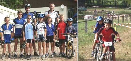 Super Start in den Unterland-Odenwald-Cup Bild links: Mit ihren Trainern Fritz Kaufmann (re.) und Andreas Münch (li.) konnten sich die jüngsten Nachwuchs-Biker des VfR Waldkatzenbach über ihre tollen Platzierungen freuen. Bild rechts: Bis zur Ziellinie kämpften Viola Münch (hinten) und Moritz Hofherr um die bessere Platzierung im Bambini-Lauf. (Fotos:Hofherr)(tw) (hof) Zum Auftaktrennen des Unterland-Odenwald-Cups in Sensbachtal konnte die Radsportabteilung des VfR Waldkatzenbach auch in diesem Jahr die größte Teilnehmergruppe an den Start schicken. Aber nicht nur quantitativ, sondern auch qualitativ konnte der VfR das MTB-Ereignis im hessischen Odenwald mit drei Siegen und vielen hervorragenden Platzierungen und Leistungen prägen und damit einmal mehr seine sportliche Dominanz in der Region beweisen.