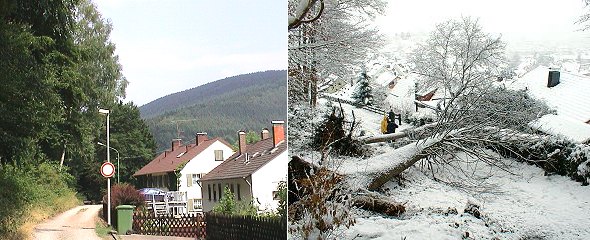 Entfernung strittiger Waldrandbäume nur nach kostspieligen Gutachten Auf über 5 km Länge reicht die Bebauung an den Eberbacher Stadtwald heran. Rechts umgestürzte Waldrandbäume am 3.Februar 2001 im Eichenweg. (Fotos:Richter/Archiv)(hr) Eberbach ist von Wald umgeben. Was Naturfreunde erheitert, sorgt bei den Anwohnern allerdings manchmal für Ungemach - vor allem dann, wenn die Wohnhäuser und Grundstücke allzu nah an den Wald heranreichen und die früher eher zierlichen Bäumchen inzwischen zu stattlichen Riesen herangewachsen sind. Dann kommt es vor, dass beängstigte Waldanrainer sich an die Stadt wenden, der der Wald zumeist gehört, und um Fällung der Bäume bitten. Weil sich entsprechende Anfragen in letzter Zeit häuften, wurde das Thema heute Abend im Gemeinderat behandelt.