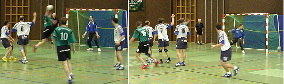 Eine starke Halbzeit reichte nicht gegen Dossenheim Szenen einer letztlich erfolglosen Aufholjagd (Fotos:Claussen)(jc) Am gestrigen Abend hatte die neuformierte 1. Mannschaft der HG Eberbach im ersten Heimspiel der neuen Saison die TSG Dossenheim zu Gast. Ein 7:13 Rückstand zur Halbzeit ernüchterte zunächst die Gastgeber und deren Anhänger in der Ittertal- Sporthalle. Eine deutliche Leistungssteigerung brachte die Eberbacher Mitte der 2. Halbzeit auf 15:17 heran. In dieser Phase stand das Spiel auf der Kippe, doch fehlte im Abschluss das nötige Glück. Die bei den Gästen aufkommende Nervosität konnte das junge Eberbacher Team nicht ausreichend nutzen, obwohl man sich in mit kombinationsstarken Aktionen immer stärker in Szene setzen konnte. Da der Anschlusstreffer einfach nicht fallen wollte, war am Ende der Rückstand der ersten Hälfte nicht mehr aufzuholen und die Gäste behielten mit 19:23 die Oberhand.