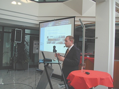 Wohin geht das Börsen-Thermometer? Abteilungsdirektor Ingo Frommen von der Landesbank Baden-Württemberg bei seinem Vortrag. (Foto:privat)(tw) (SPK) Gespickt mit vielen interessanten Tipps war dieser Tage die Veranstaltung zum Thema "Die Aktien- und Rentenmärkte im Spannungsfeld zwischen Konjunkturoptimismus und Terrorpessimismus" in der Sparkassen-Hauptstelle Eberbach. Nach dem ersten Quartal 2004 ist bei den Marktteilnehmern eine gewisse Ernüchterung eingekehrt. "Die Konjunkturprognosen und damit auch die Vorhersagen für den Deutschen Aktienmarkt waren wohl etwas zu optimistisch," so Sparkassendirektor Uihlein in seiner Begrüßung. Abteilungsdirektor Ingo Frommen von der Landesbank Baden-Württemberg reflektierte in seinem rund 60-minütigem Vortrag mit unterschiedlichen Betrachtungsweisen die vielfältigen Abhängigkeiten und aktuellen Szenarien der europäischen Wirtschaft im Zusammenspiel mit den Vereinigten Staaten von Amerika und dem großen Newcomer China. Frommen sieht eine moderate Aufwärtsbewegung an den Börsen, bedingt durch eine konjunkturelle Erholung in Europa im Jahr 2004, steigende Unternehmensgewinne in diesem Jahr und in den Folgejahren und eine Rückkehr des Vertrauens in die Direktanlage in Aktien. Mit einer Wahrscheinlichkeit von 65 Prozent, dass seine Prognose Wirklichkeit wird, wäre der DAX dann in drei Monaten wieder bei 4000 Punkten bzw. in zwölf Monaten bei 4400 Punkten. Natürlich kann niemand die Zukunft für alle verlässlich prognostizieren – Irren ist schließlich noch immer menschlich.
