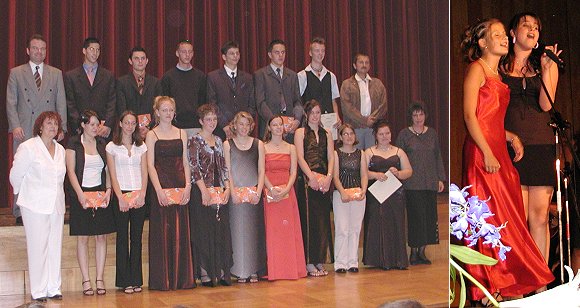 102 Absolventinnen und Absolventen der Realschule verabschiedet Die mit Preisen ausgezeichneten Schülerinnen und Schüler zusammen mit Bürgermeister Bernhard Martin (hi. links),Rektorin Regine Sattler- Streitberg (vo. links) und der stellvertretenden Elternbeiratsvorsitzenden Susanne Gries (vo. rechts) sowie Szene einer musikalischen Showeinlage. (Fotos:Friedrich)(jc) 102 Absolventinnen und Absolventen der Realschule Eberbach wurden am vergangenen Freitag in der Stadthalle im Rahmen einer Abschlussfeier verabschiedet. Durch ein gekonnt von Schülern eingestreutes Rahmenprogramm wurde aus einer sonst eher steifen Entlassfeier ein unterhaltsamer Abend mit zahlreichen musikalischen Showeinlagen. Redner des Abends waren Rektorin Regine Sattler- Streitberg, Bürgermeister Bernhard Martin, die stellvertretende Elternbeiratsvorsitzende Susanne Gries und Schülersprecher Lars Artz.