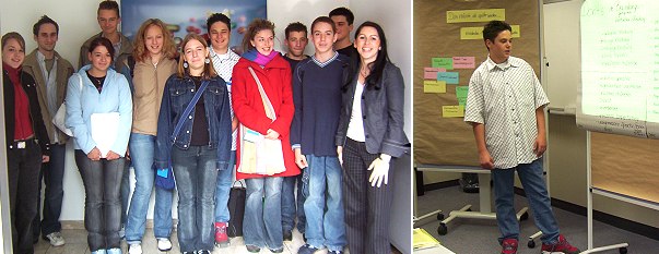 Seminare für Mitarbeiterkinder der R.P. Scherer GmbH & Co. KG (Fotos:rps)(jc) (rps) An den vergangenen beiden Samstagen konnten die Personalreferentinnen Anita Ihrig und Meike Hamberger der R.P. Scherer GmbH & Co. KG jeweils 12 interessierten Jugendlichen der Mitarbeiter Tipps und Informationen rund um das Thema Bewerbung nach dem Motto "aus der Praxis für die Praxis" vermitteln. Am Vormittag standen Themen wie das Erschließen von Informationsquellen über Ausbildungsplätze, Studiengänge und Ausbildungsplatzbörsen, die Gestaltung von Bewerbungsunterlagen sowie das Verhalten bei Bewerbungsgesprächen im Vordergrund. Zusätzlich konnten die Teilnehmer unterschiedlichste Formen von Einstellungstests selbst ausprobieren und erfahren welche Methoden Unternehmen bei der Bewerberauwahl anwenden. Am Nachmittag gab es zunächst die Gelegenheit an einem von den Referentinnen beispielhaft simulierten Bewerbungsinterview mögliche Verhaltens- und Kommunikationsfehler zu beobachten, bevor sich ein Teil der Mitarbeiterkinder selbst als Bewerber versuchte und bei weiteren Bewerbungsgesprächen die zuvor gehörten theoretischen Kenntnisse anwenden konnten. Wer nicht Bewerber war, fungierte als Beobachter um auf Verhalten, äußeres Erscheinungsbild und Sprache der Bewerber sowie auf die Fragetechniken der Interviewer zu achten um anschließend ein Feedback zu geben. Ausgestattet mit umfangreichen Unterlagen und um viele Informationen reicher sehen die Jugendlichen den bevorstehenden Bewerbungsaktivitäten nun bestens gerüstet entgegen.