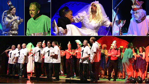 Die kurzweilige und effektvolle Show voller Klamauk in bunten Kostümen war gespickt mit Musik und Tanz. Unter anderem war der schwergewichtige KGK-Präsident Udo Geilsdörfer als grazile Elfe zu bewundern, und Bürgermeister Bernhard Martin gastierte als Standesbeamter.